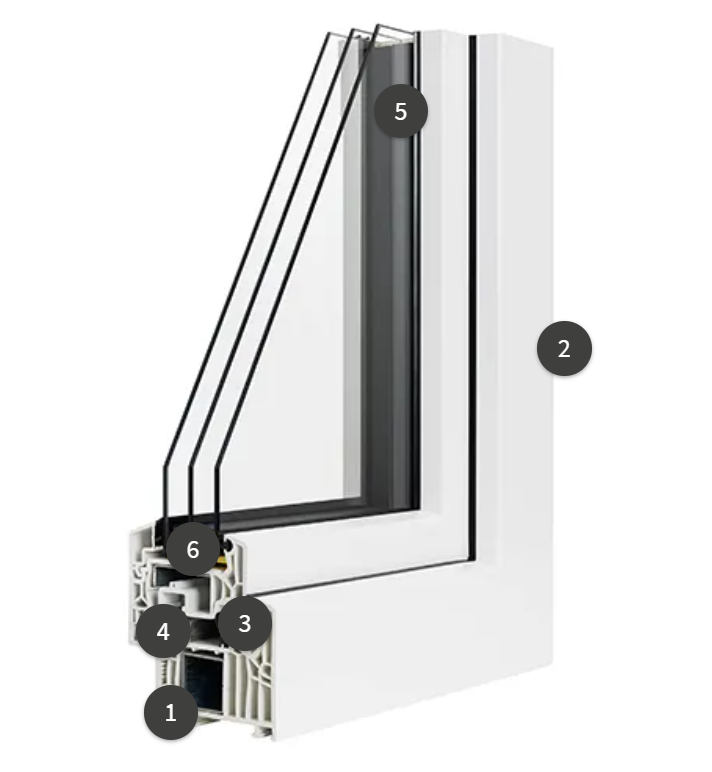 Das Profilsystem von 82 mm mit 7 Kammern verbessert die Rahmenisolation und verlängert die Funktionsdauer. - 2