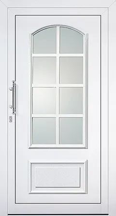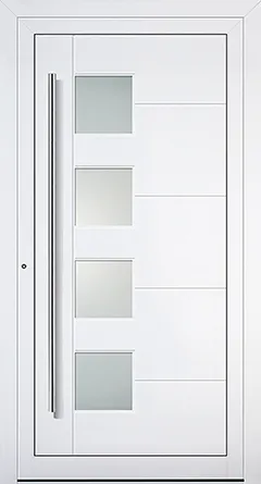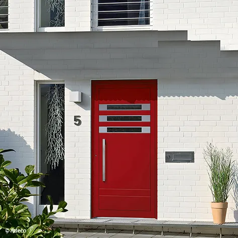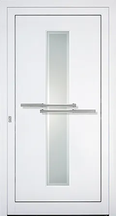 Diese Einsatz-Füllungstür zeichnet sich durch eine grosse Variabilität und hochwertige Oberflächen aus. Die Füllung wird in den Flügelrahmen eingesetzt. Dies macht die Haustür besonders flexibel: Sollte zu einem späteren Zeitpunkt der Wunsch nach einer optischen Veränderung aufkommen, kann die Füllung problemlos ausgetauscht werden.