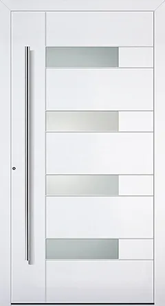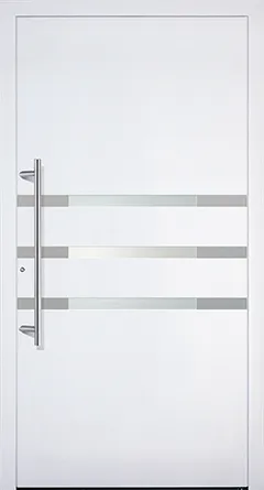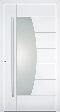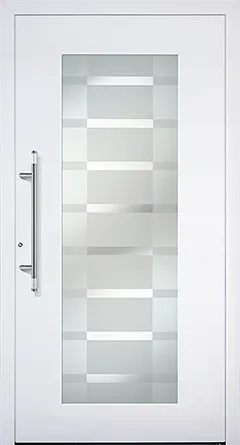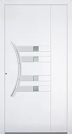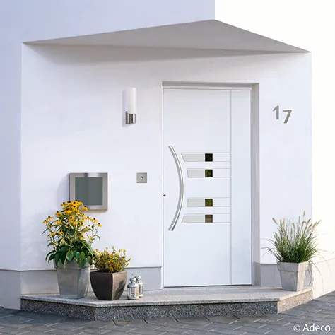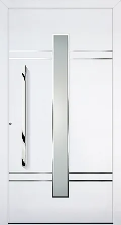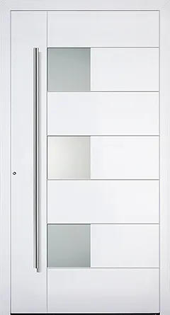 Als sogenannte Aufsatz-Füllungstür glänzt die Haustür prestige mit einem eleganten Erscheinungsbild: Der Versatz zwischen Flügelprofil und Füllung entfällt. Die Aussen-ansicht wirkt dadurch elegant und grosszügig. Die hochwertigen Oberflächen und die wenigen Kanten erleichtern zudem die Pflege markant. Auch hier bieten die verschiedenen Standardtypen breite gestalterische Optionen. Beim Haustürtyp prestige sind hervorragende Dämmwerte möglich: Der U-Wert von unter0,6 W/m2 kann bei Haustüren als Rekord gelten.
